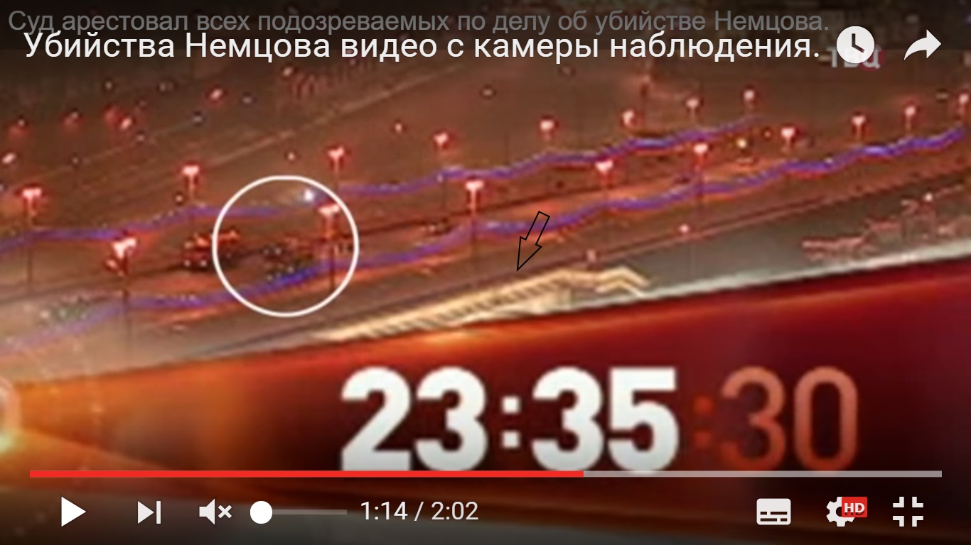 И скорей всего этот их маневр реально видел и удивил Немцова, что там за беготня впереди, чего там случилось? Ибо на самом деле стрелок сделает свой выстрел не ранее чем через три-четыре секунды: в 23:31:14.