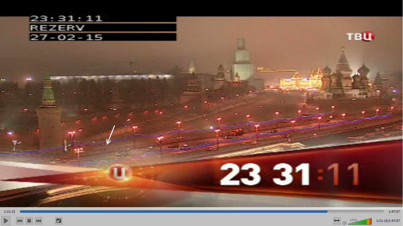 И значит очень внимательно смотрим видео ТВЦ (которое как оказалось в оригинале дает много больше обзора нежели отредактированное видео, что было размещено в интернете). Смотрим как раз тот кусочек экрана, что раньше был не виден. Время 23:30:50 и что наблюдаем?