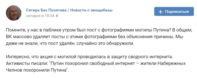 «ВКонтакте» удаляет посты с «надгробием Путина».