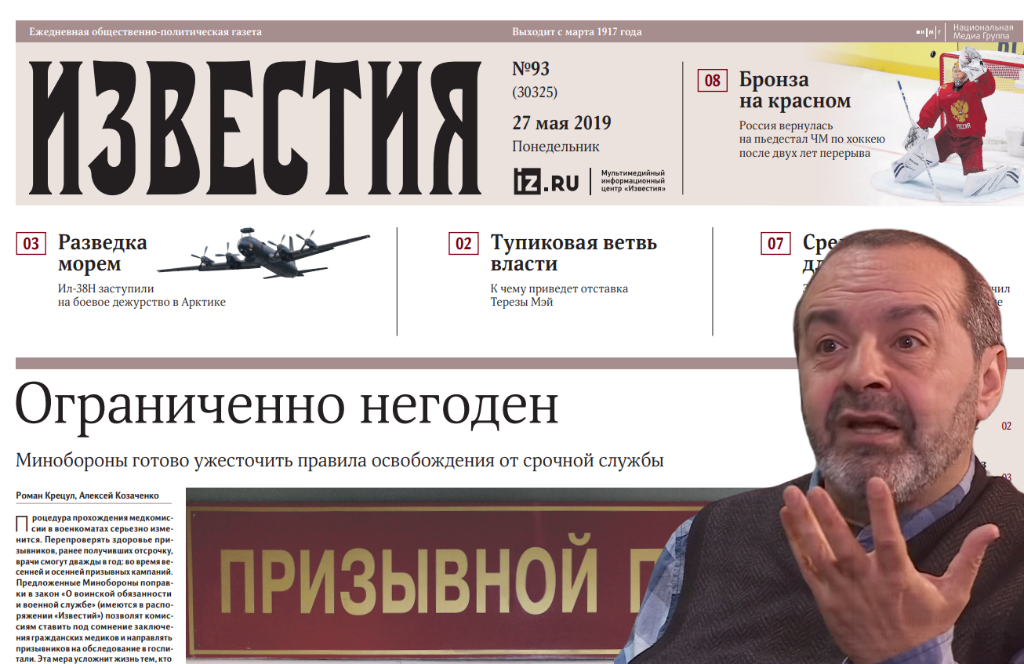 Главный материал номера от 27 мая посвящен героическим усилиям Минобороны по противостоянию призывникам-симулянтам и врачам-взяточникам. Ужесточены, слава аллаху, правила медицинского освидетельствования!