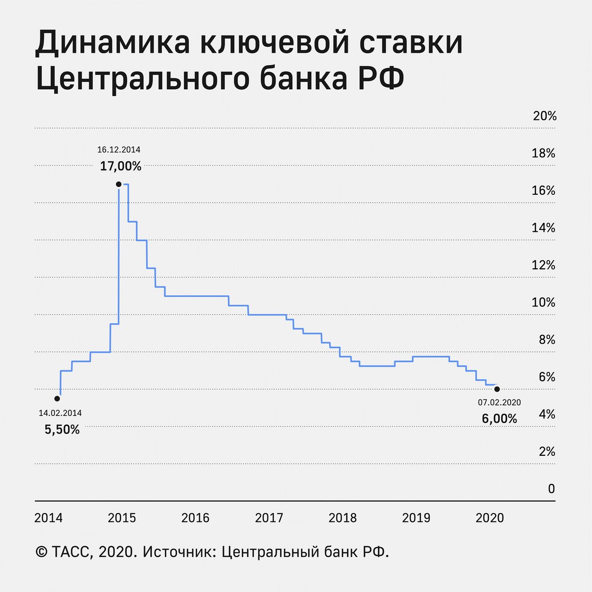 7 февраля ЦБ сократил свою ключевую ставку на четверть пункта — с 6,25% до 6%
