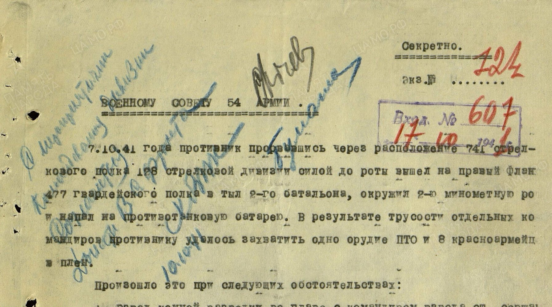 Упомянуты в рапорте — по-разному проявившие себя бойцы Сафонов, Лобачев и Шлык, восемь красноармейцев, взятых немцами в плен вместе в орудием, и трое бойцов, допустивших трусость и панику. Эти трое были расстреляны 10 октября по приговору военного трибунала.
