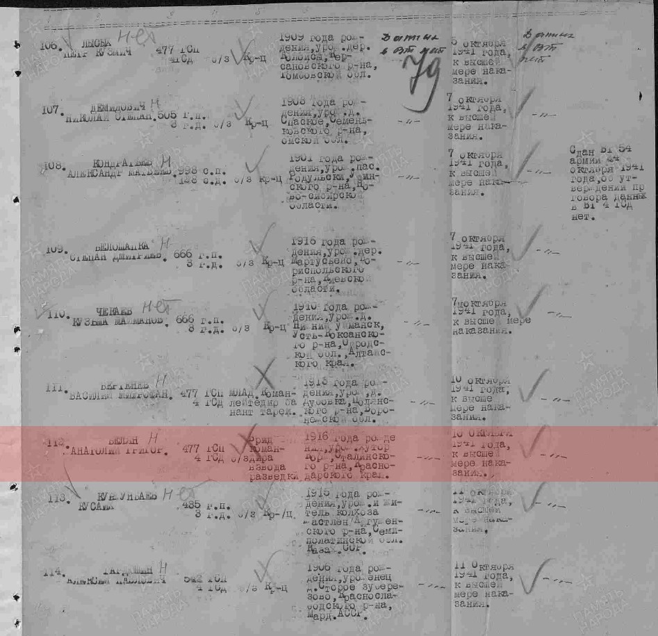Счет расстрелянных в те дни шел на тысячи. Страница со ст. сержантом Беляном и мл. лейтенантом Бертеневым (см.фото) — из середины 35-страничного списка приговоренных военными трибуналами только одной, 59-й армии.