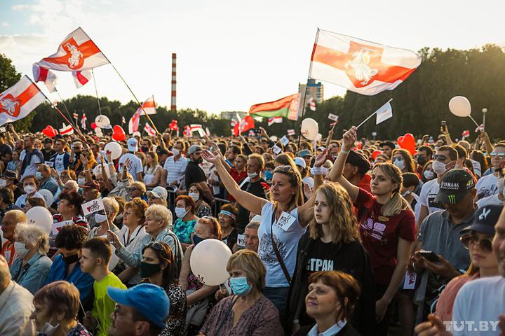 В Минске прошел митинг в поддержку кандидата на должность президента Белоруссии Светланы Тихановской. По данным правозащитного центра «Весна», в нем приняли участие 63 тыс. человек.