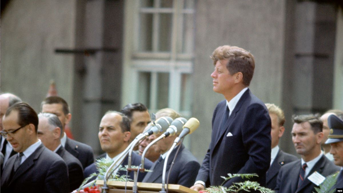 Джон Кеннеди 26 июня 1963 г. перед Шёнебергской ратушей в Западном Берлине