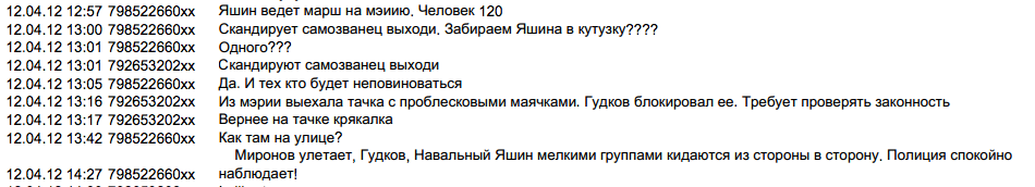 То есть сидит в московском кабинете наделенная незаконной властью мелкая сошка и указывает пальчиком, кого и где задерживать. Судя по остальным перепискам, этим же пальчиком он указывает, против кого и как фабриковать уголовные дела, кого «отхерачить», а кого просто «засудить». Полицейские генералы, судьи и губернаторы берут под козырек.